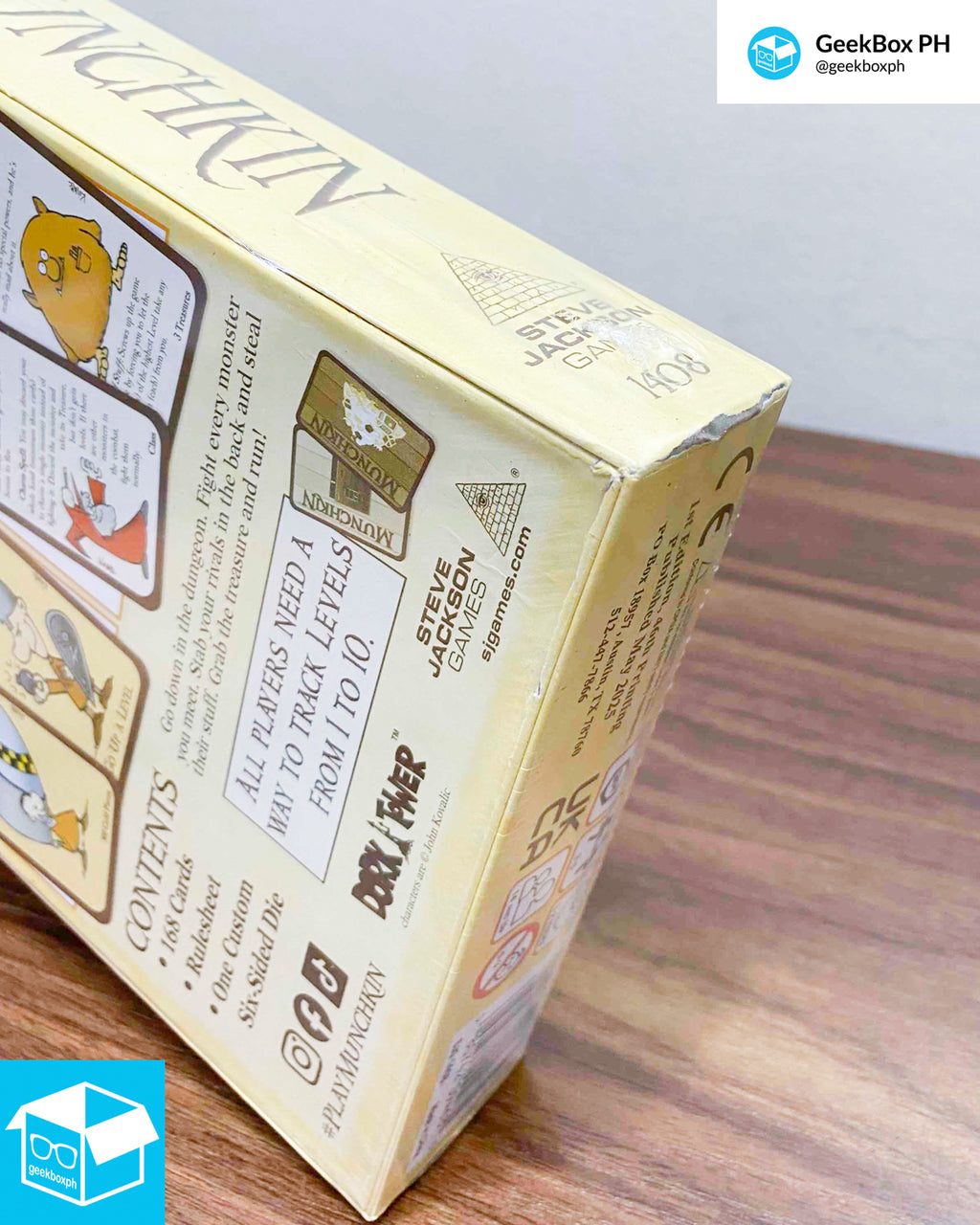 This award-winning card game, designed by Steve Jackson, captures the essence of the dungeon experience... with none of that stupid roleplaying stuff. You and your friends compete to kill monsters and grab magic items. And what magic items! Don the Horny Helmet and the Boots of Butt-Kicking. Wield the Staff of Napalm... or maybe the Chainsaw of Bloody Dismemberment. Start by slaughtering the Potted Plant and the Drooling Slime, and work your way up to the Plutonium Dragon...